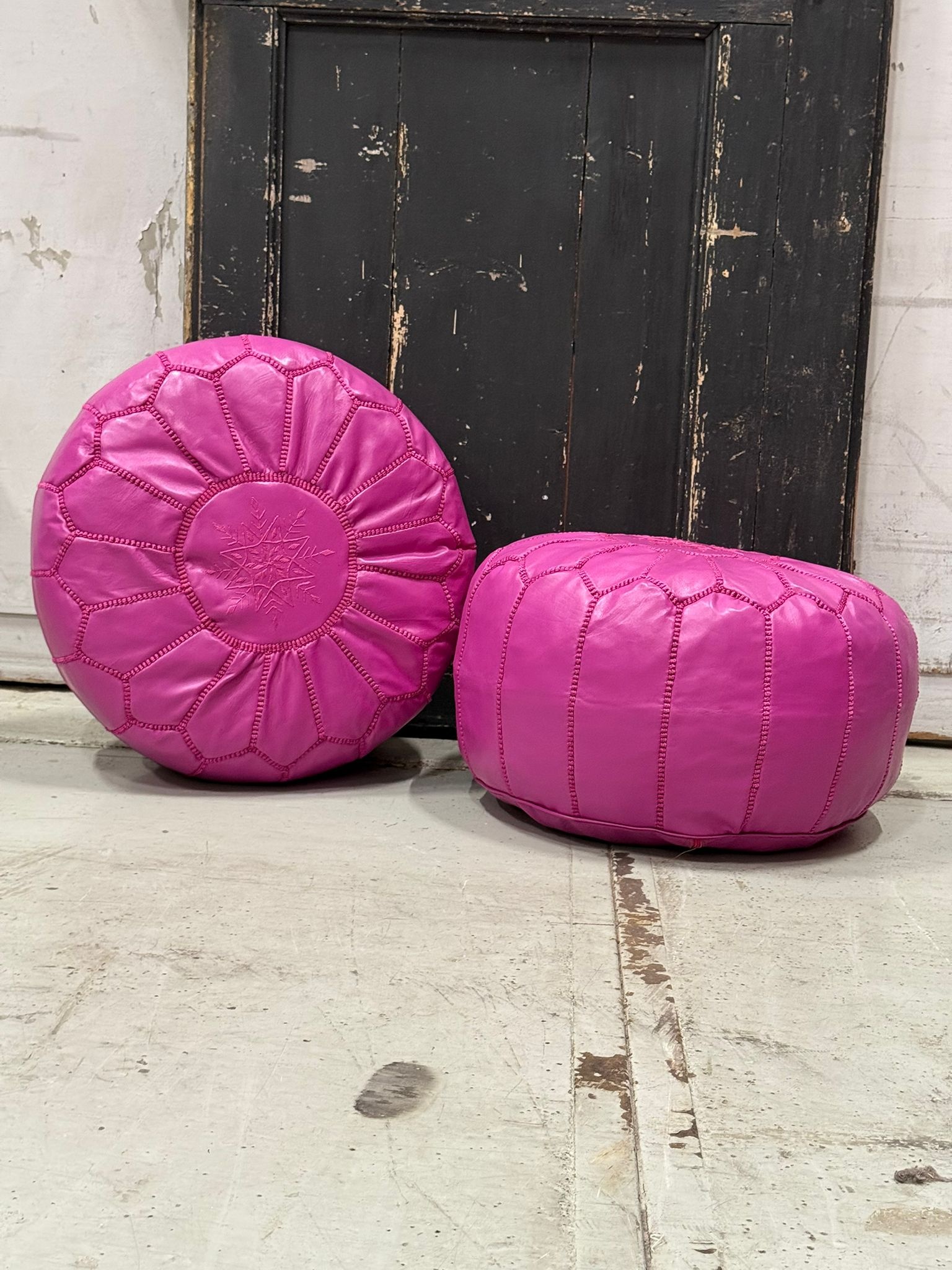 Poef - leer fuchsia